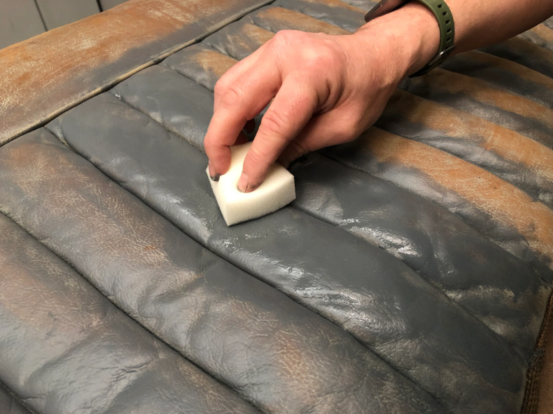 The leather repair company’s leather paints are made to the perfect consistency so they’re extremely easy to use and apply. They can be easily applied by hand using a sponge or can be sprayed through any spraying equipment. Spraying equipment varies from a small airbrush to a full-size spray which doesn't allow any blockages so you can spray with ease. For color restorations, we've found that the HLVP spray gun is the best spray gun out there, which is why we always use it in house.